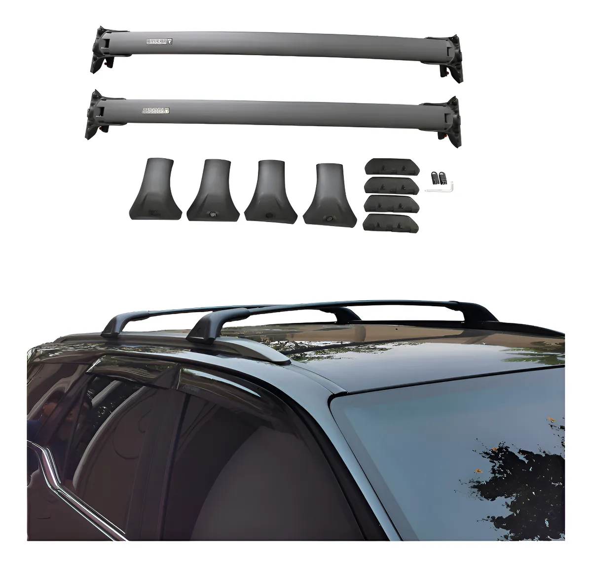 Deben ser barras laterales separadas del techo de tu vehículo. Se anclan en las barras laterales de tu auto. La distancia entre barras laterales tiene que ser menor a 108 cms.